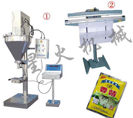 香料包裝機 ① (粉劑包裝機)具有自動定量、自動充填、自動調(diào)整計量誤差等功能,人工套袋,光電開關(guān)控制,袋口干凈,易封口,采用步進電機及電子稱量技術(shù),包裝精度高,適用于香料、葡萄糖、奶粉、面粉、精細白沙糖、味精、調(diào)味品等粉末料狀包裝。